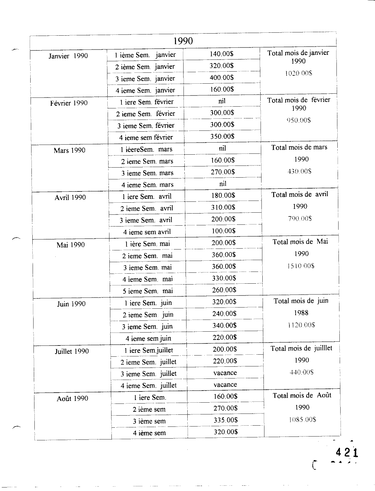 L'établissement du salaire en raison d'un supposé temps partiel, eton ne sait pas où elle a prit que monsieur BIlodeau avait travailler 28.2 semaines en 1990 puisque c'est faux, il a travaillé 38 semaines en 1990 et d'ailleurs, l'accident étant arrivé fin novembre 1990, il y a 5 semaines non travaillées car en convalescence, qui sont considéré comme quoi?