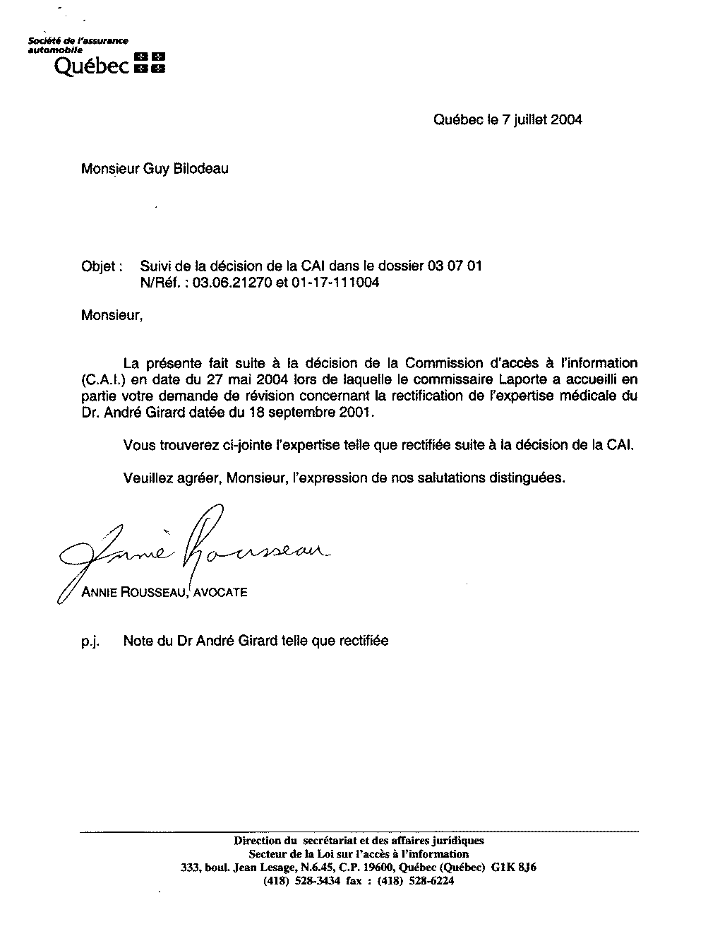 Enfin la SAAQ admet la vérité! MAIS l'expertise est faite de façon à ne pas incriminer ceux qui ont passés au dossier avaient lui...