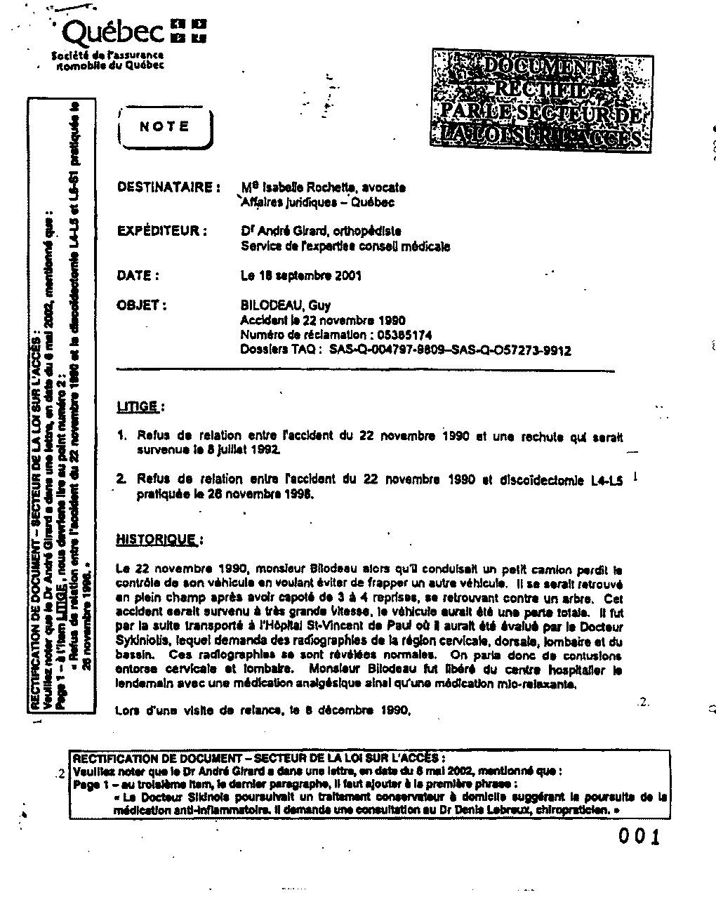 2001 expertise orthopédiste (de la SAAQ)