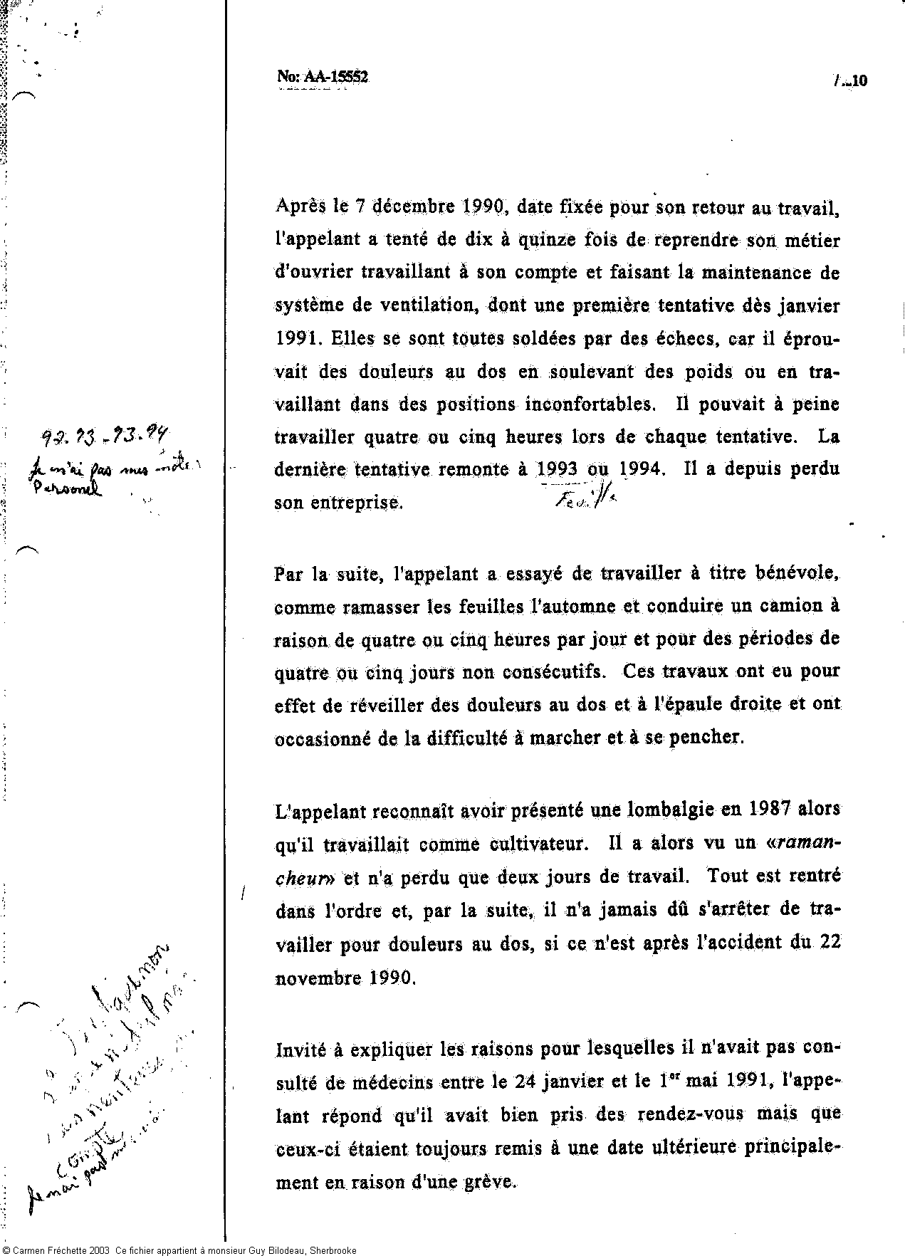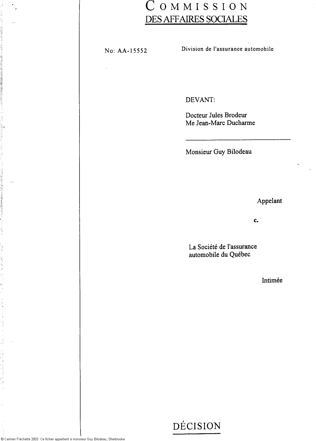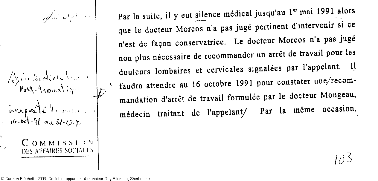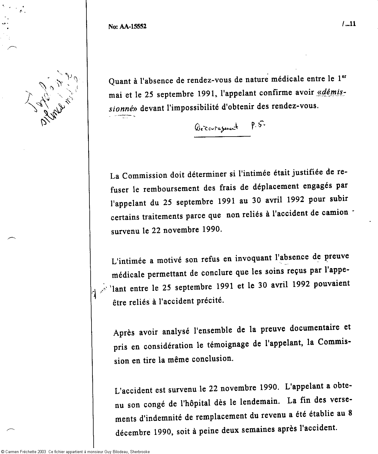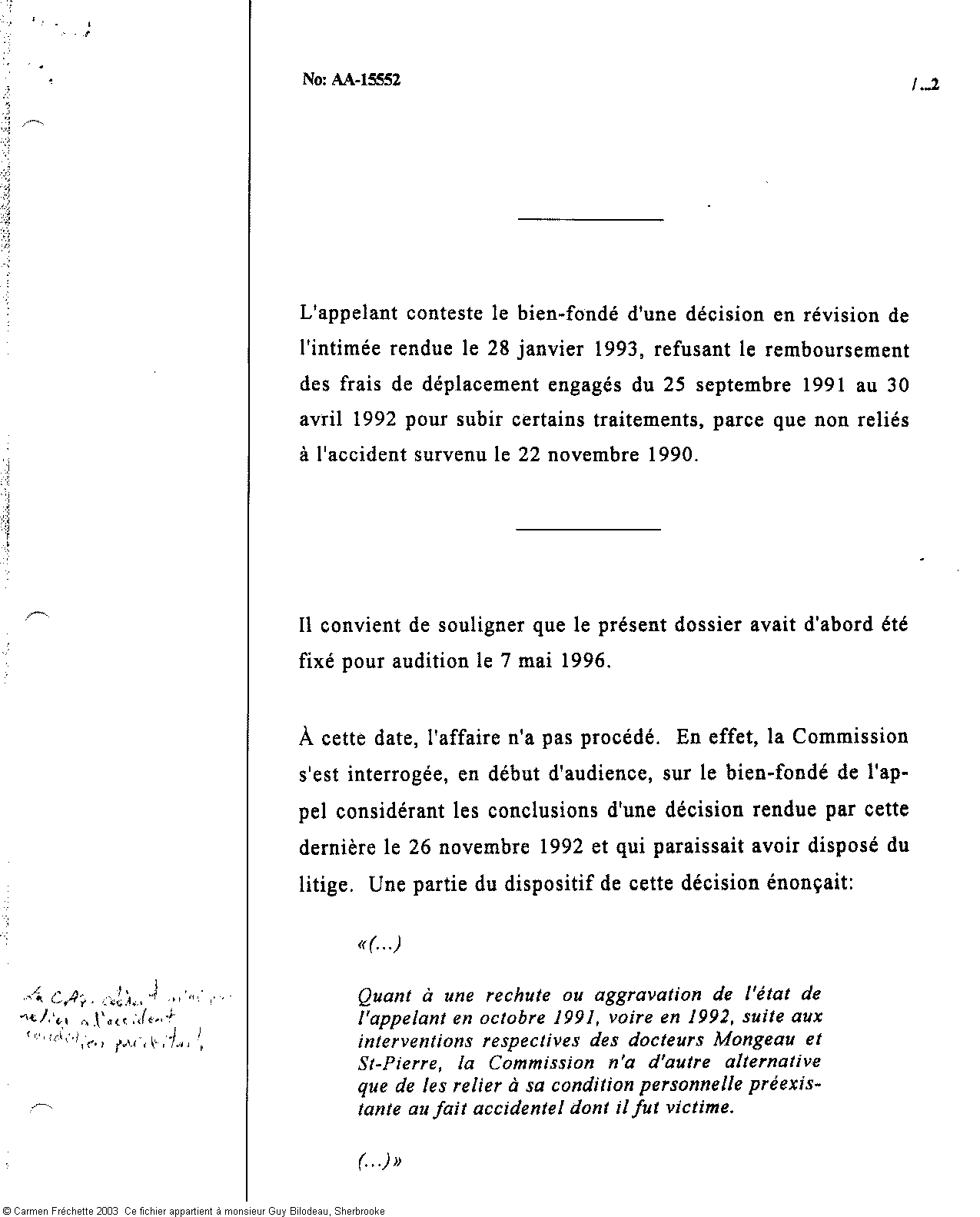 Le 13 décembre 1996, la CAS (commission des affaires sociales, maintenant tribunal administratif du Québec) abuse volontairement de ses pouvoirs lors de la demande de révision.