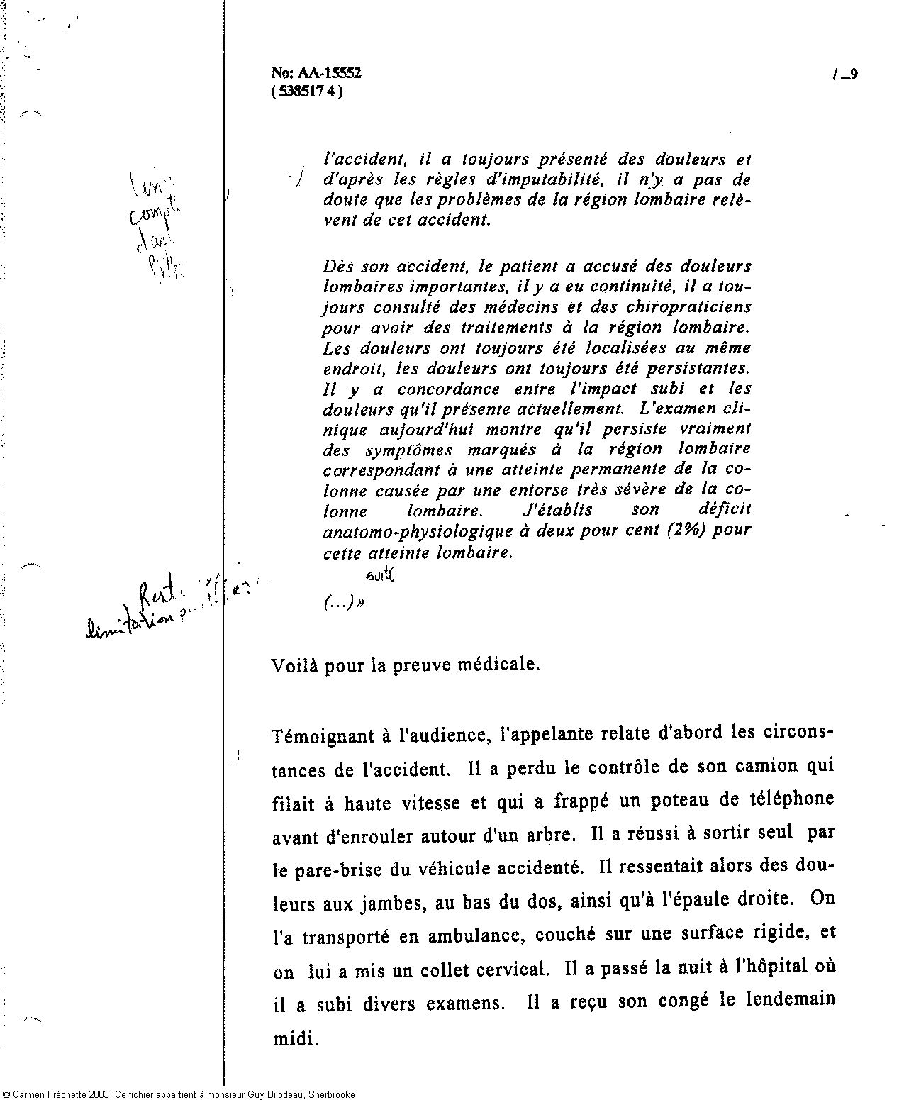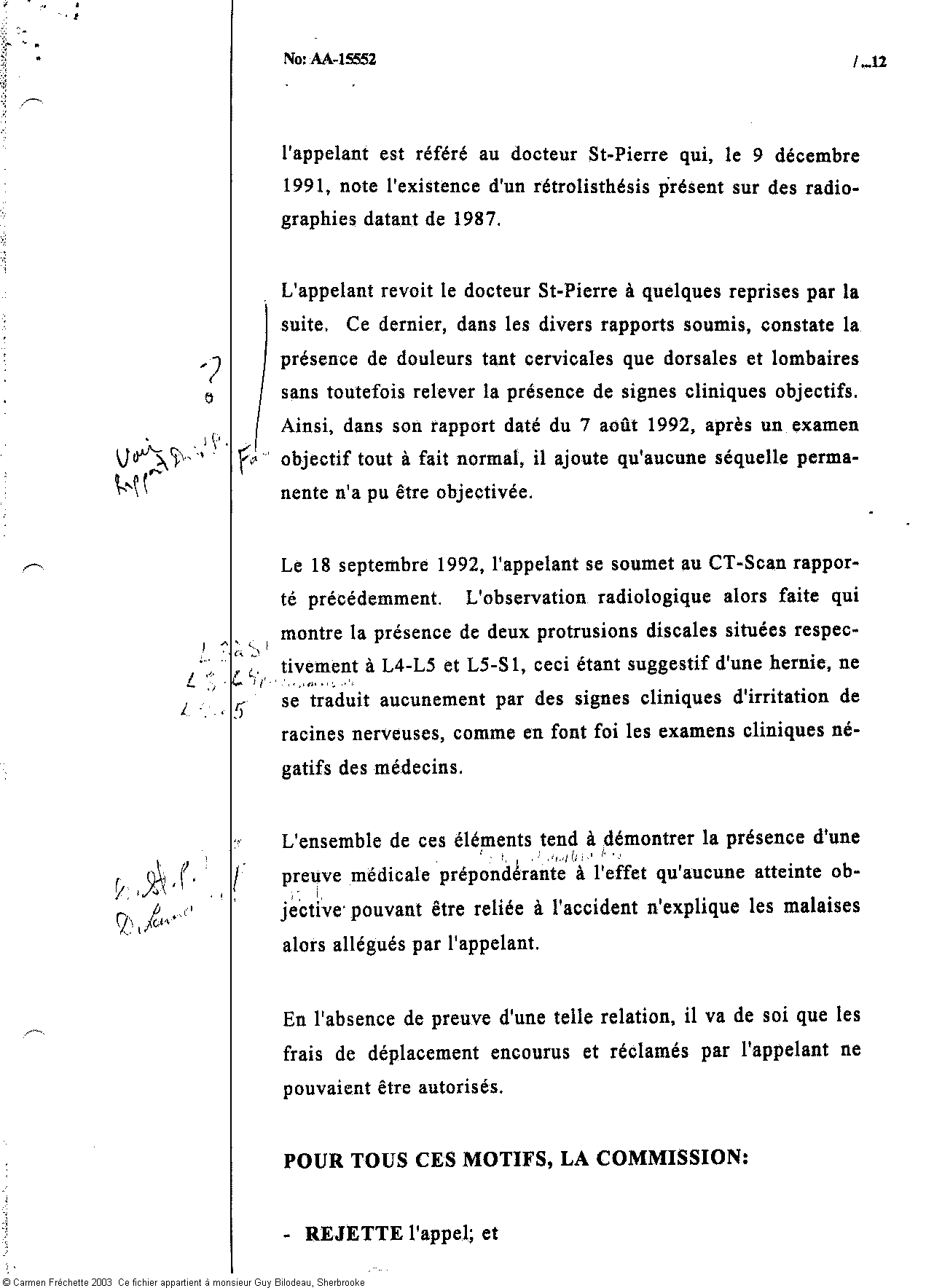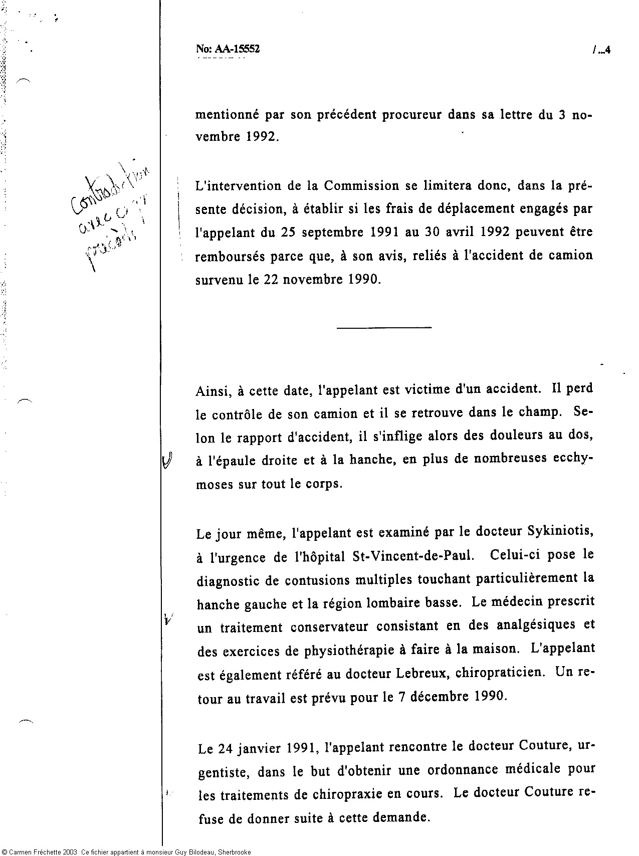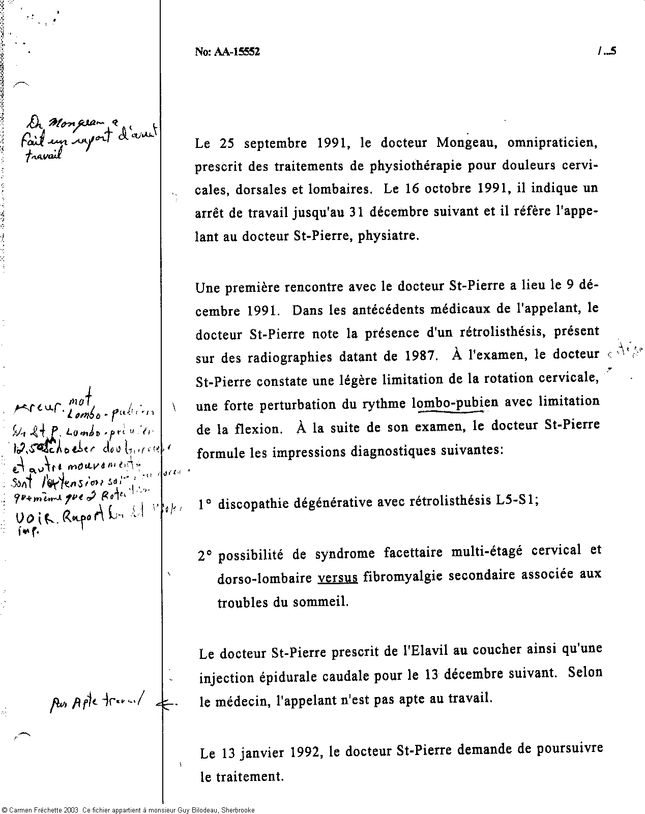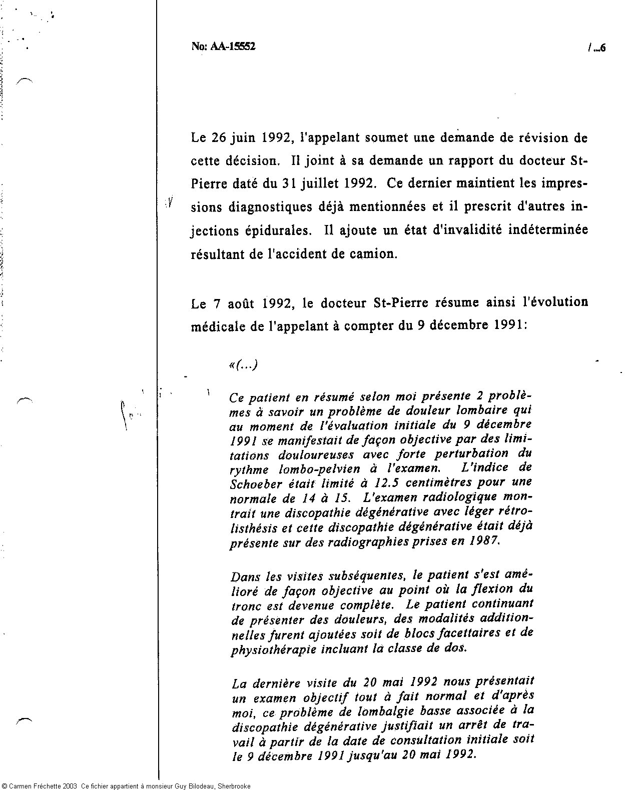 Le 13 décembre 1996, la CAS (commission des affaires sociales, maintenant tribunal administratif du Québec) abuse volontairement de ses pouvoirs lors de la demande de révision.