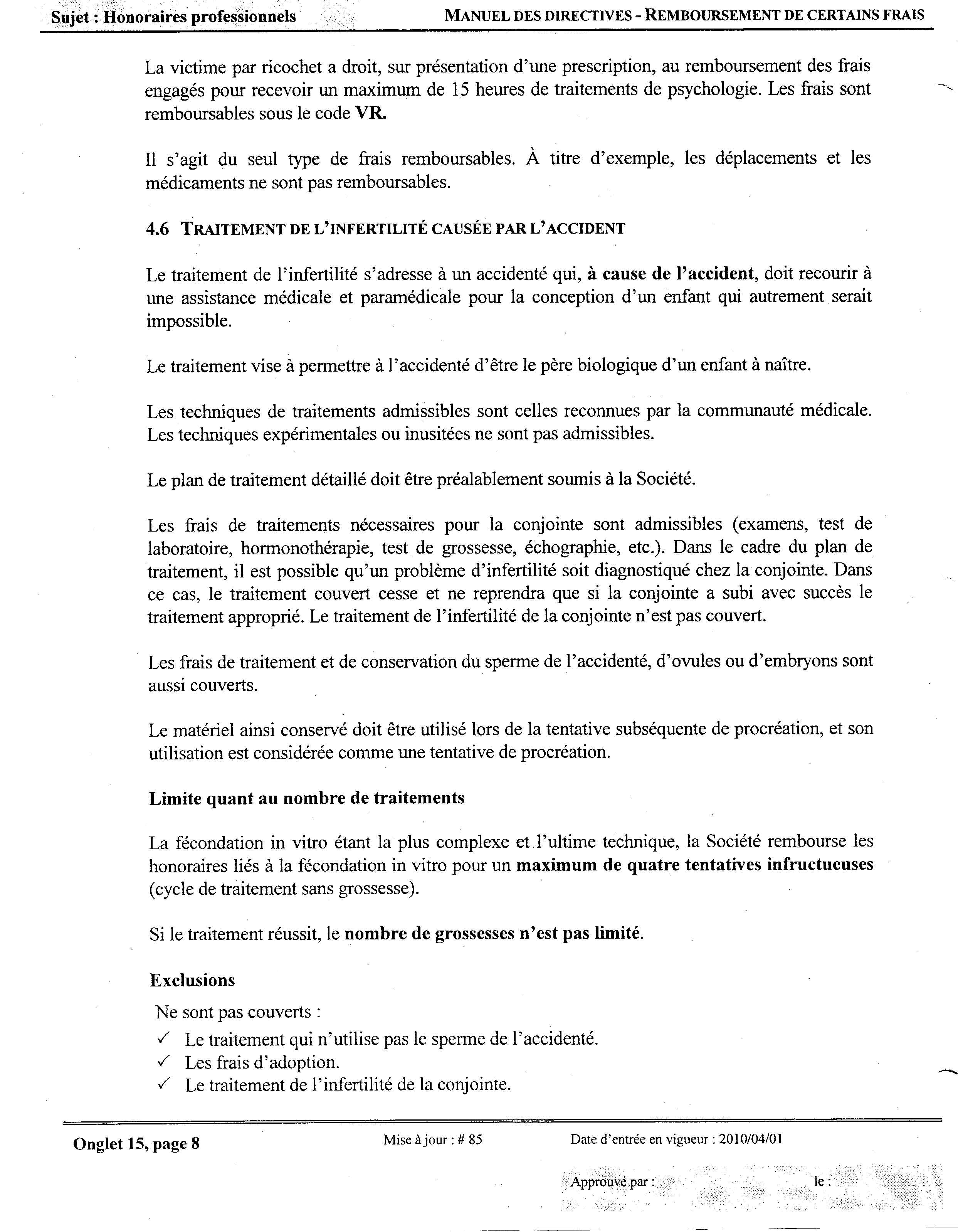 II s'agit du seul type de frais remboursables. À titre d'exemple, les déplacements et les médicaments ne sont pas remboursables.