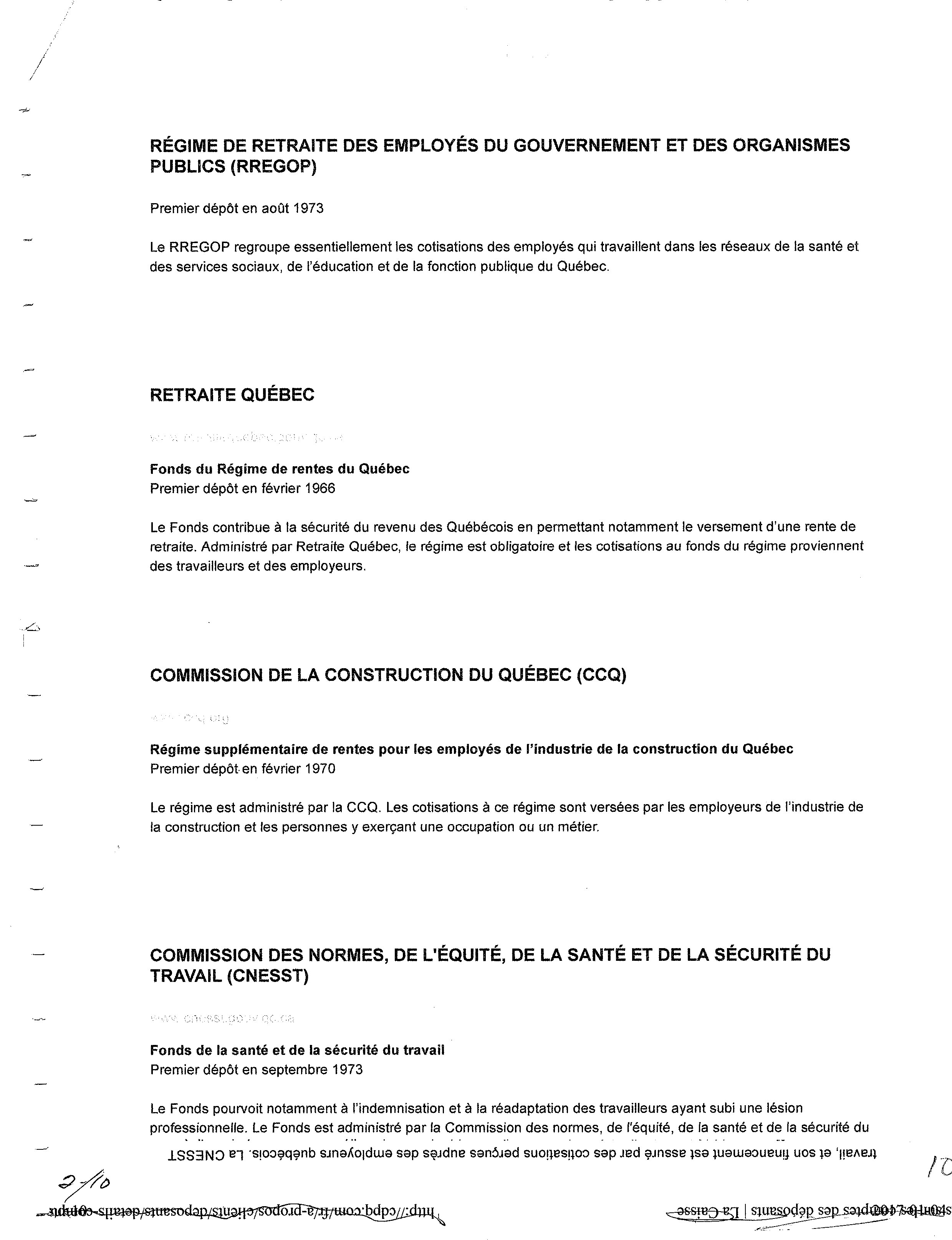 Fonds du Régime de rentes du Québec Premier dépôt en février 1966