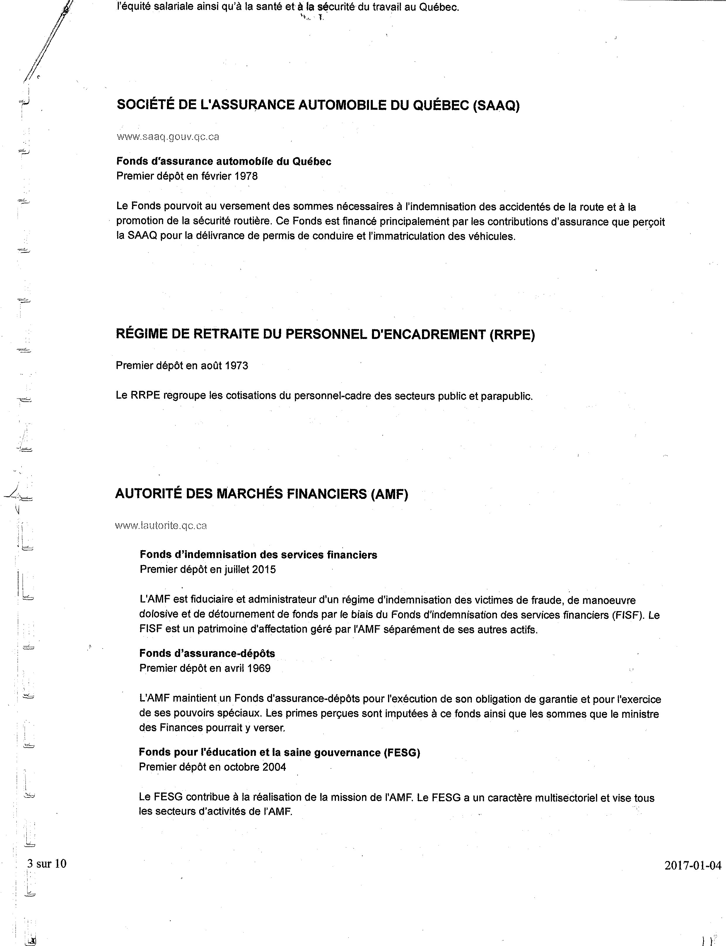 MINISTÈRE DES FINANCES, GOUVERNEMENT DU QUÉBEC