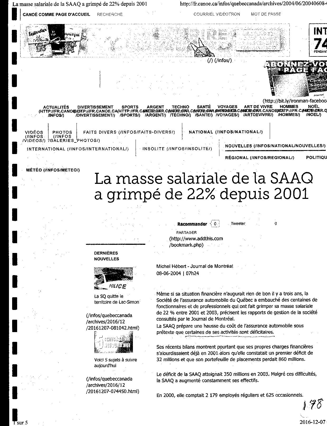 Le déficit de la SAAQ atteignait 350 millions en 2003. Malgré ces difficultés, la SAAQ a augmenté constamment ses effectifs.