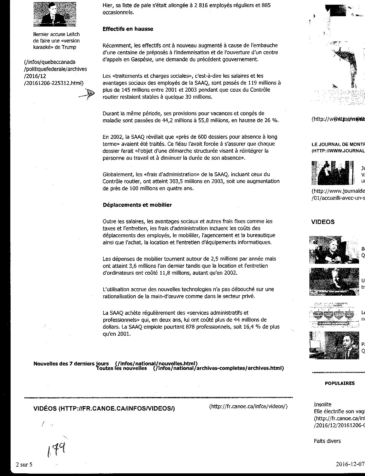 La masse :salariale de la SAAQ a grimpé de 22% depuis 2001