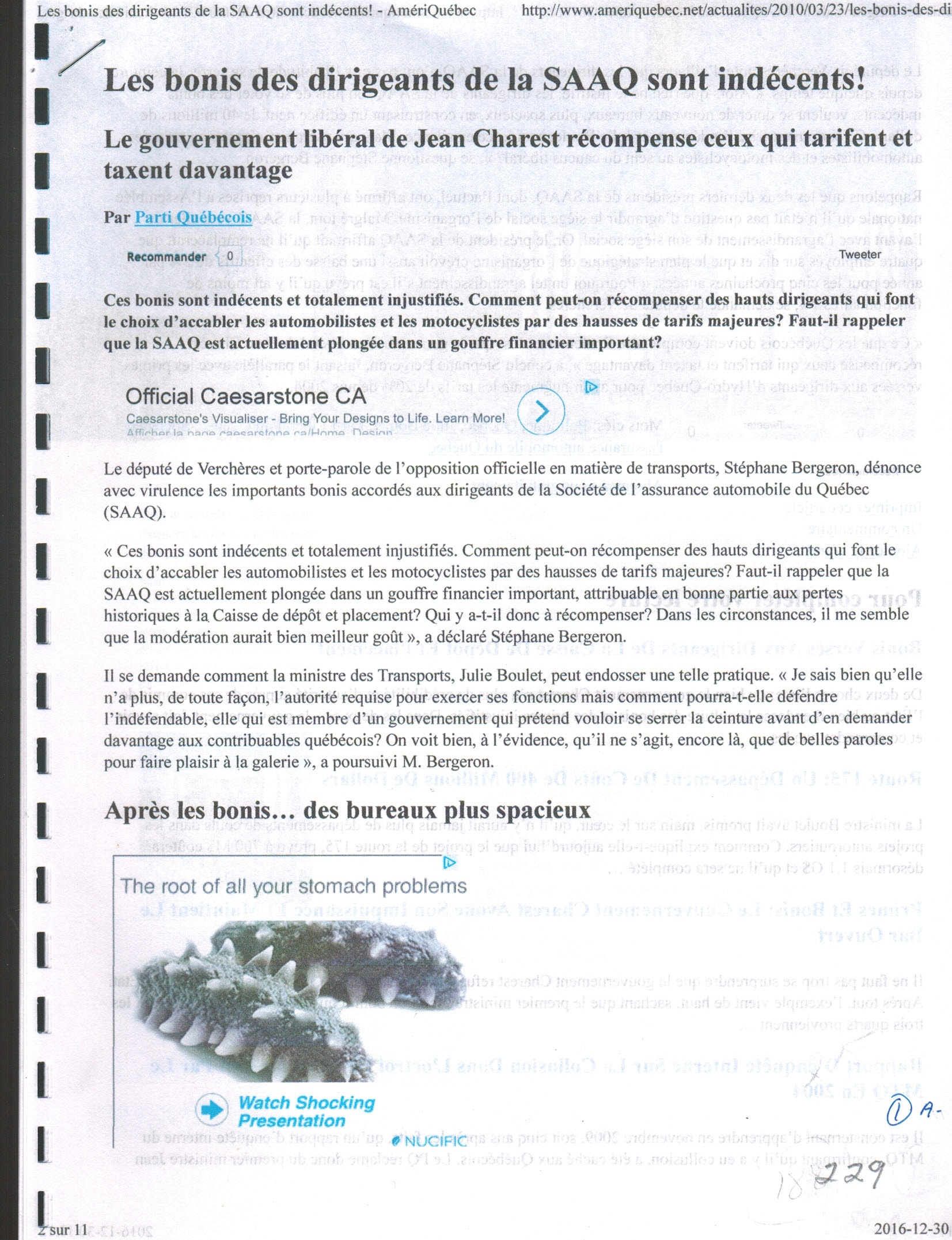 « Ces bonis sont indécents et totalement injustifiés. Comment peut-on récompenser des hauts dirigeants qui font le choix d'accabler les automobilistes et les motocyclistes par des hausses de tarifs majeures? Faut-il rappeler que la SAAQ est actuellement plongée dans un gouffre financier important, attribuable en bonne partie aux pertes historiques à la Caisse de dépôt et placement? Qui y a-t-il donc à récompenser? Dans les circonstances, il me semble que la modération aurait bien meilleur goût », a déclaré Stéphane Bergeron.