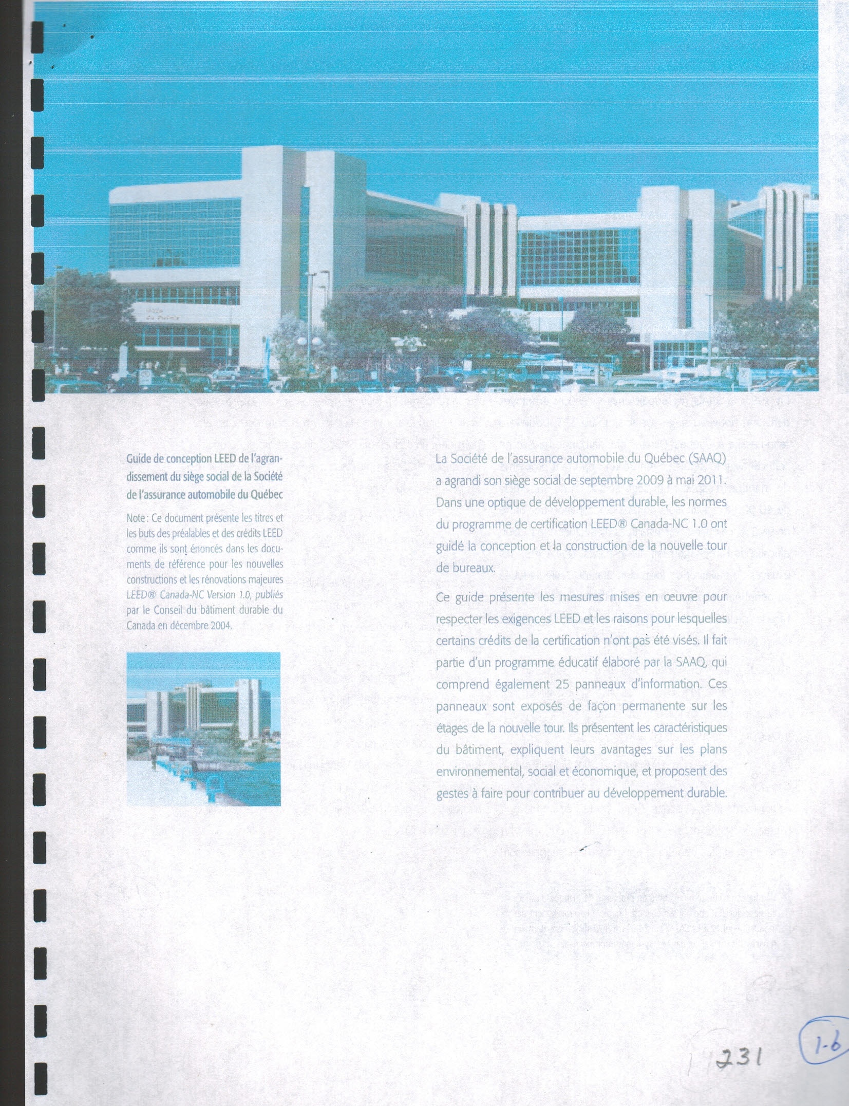 Guide de conception LEED de l'agrandissement du siège social de la Société de l'assurance automobile du Québec