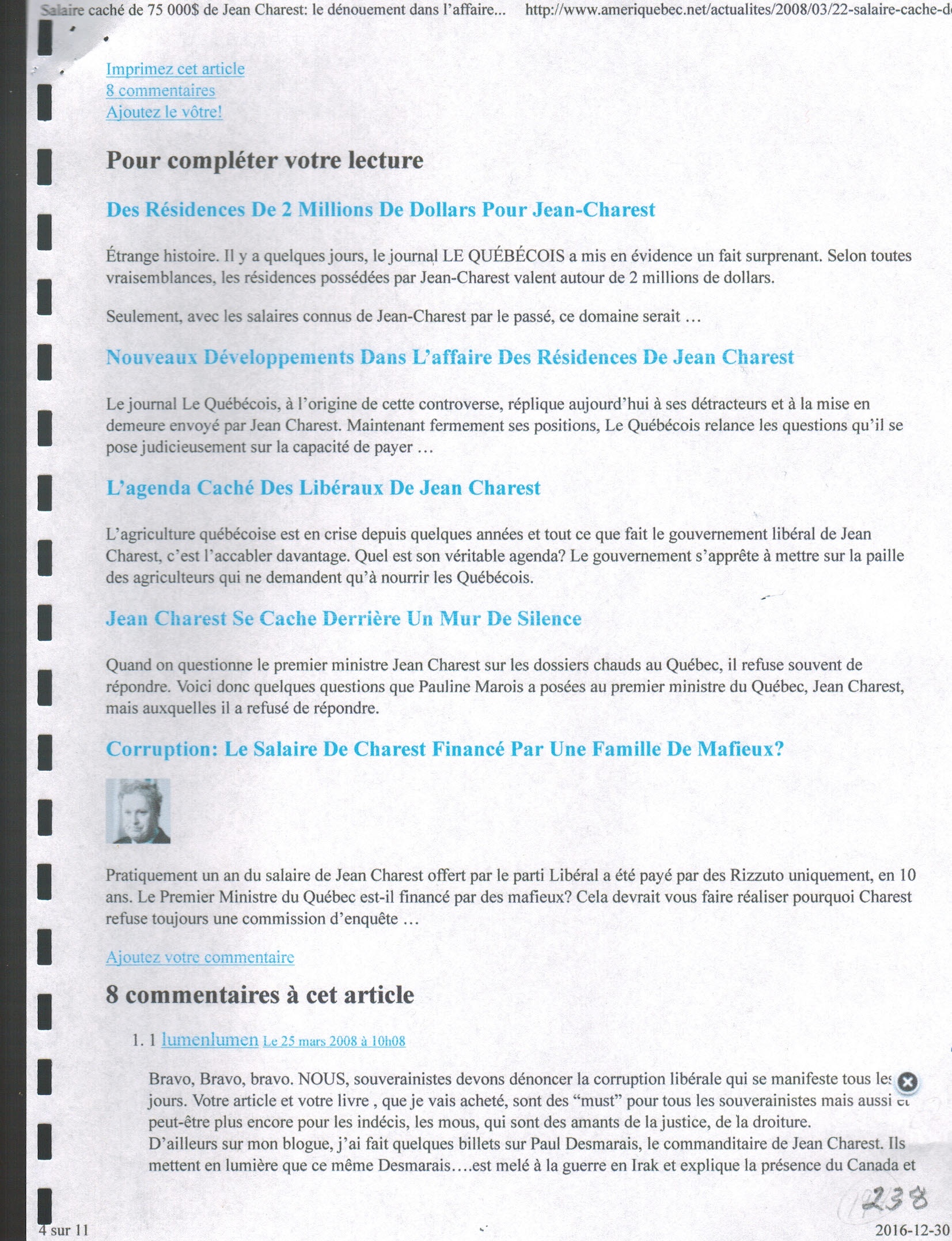 Pratiquement un an du salaire de Jean Charest offert par le parti Libéral a été payé par des Rizzuto uniquement, en 10 ans. Le Premier Ministre du Québec est-il financé par des mafieux? Cela devrait vous faire réaliser pourquoi Charest refuse toujours une commission d'enquête ...