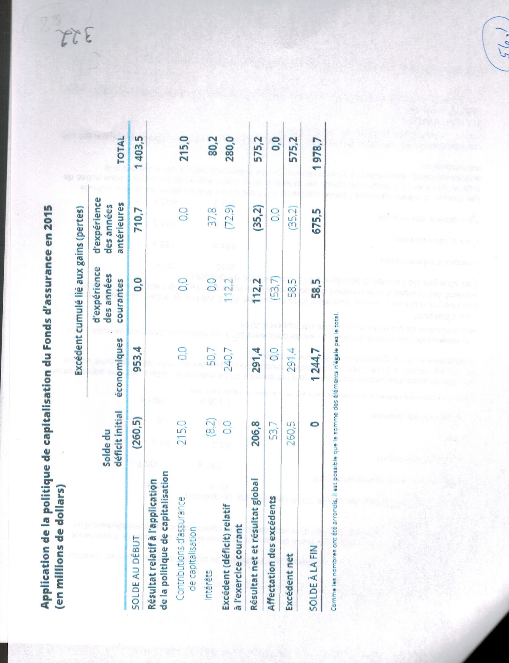 Application de la politique de capitalisation du Fonds d'assurance en 2015 (en millions de dollars)