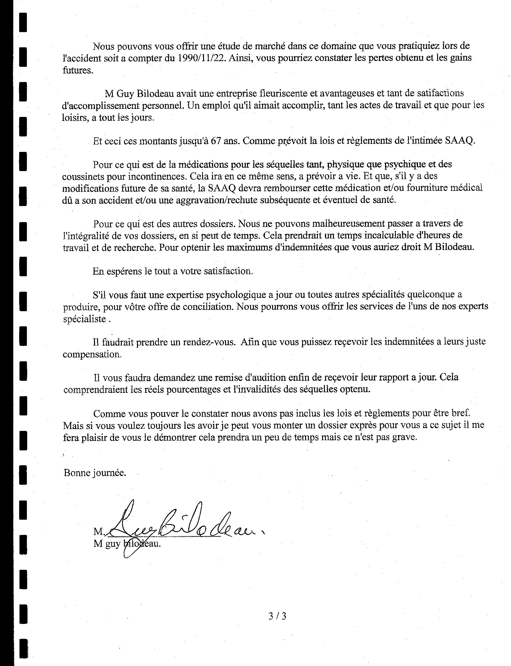 Pour ce qui est des autres dossiers. Nous ne pouvons malheureusement passer a travers de l'intégralité de vos dossiers, en si peut de temps. Cela prendrait un temps incalculable d'heures de travail et de recherche. Pour optenir les maximums d'indemnitées que vous auriez droit M Bilodeau.
