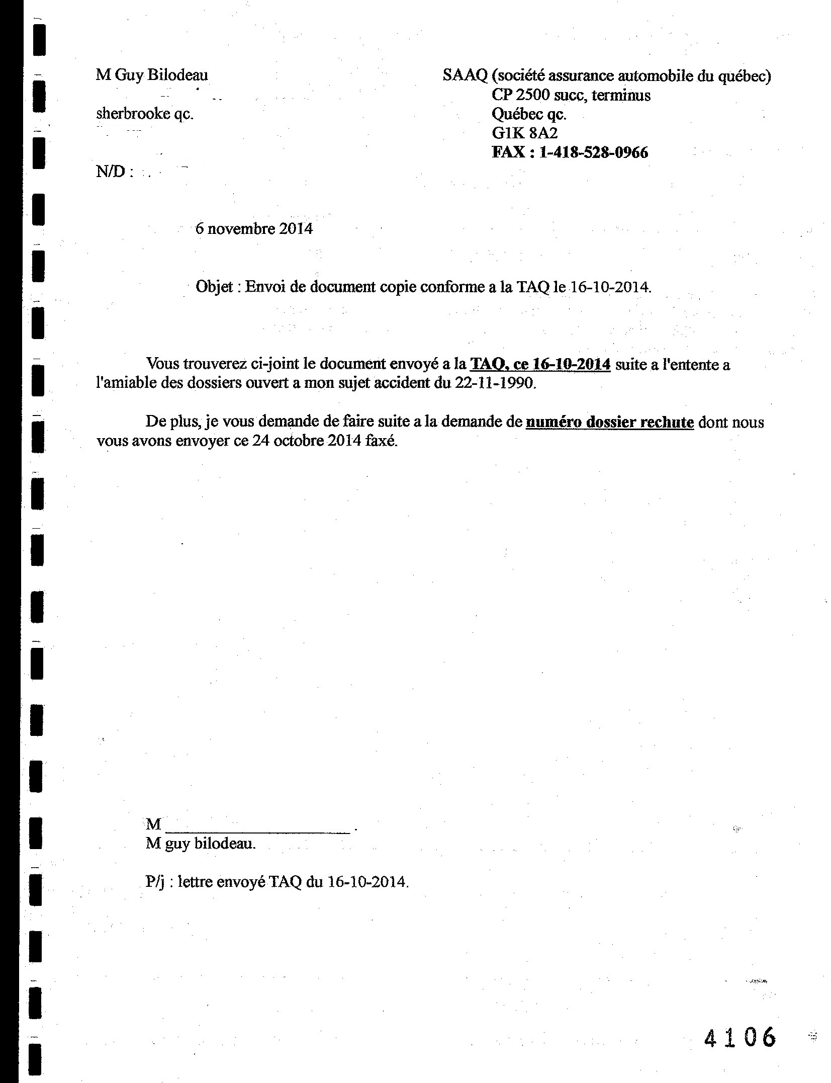 Pfj : lettre envoyé TAQ du 16-10-2014.