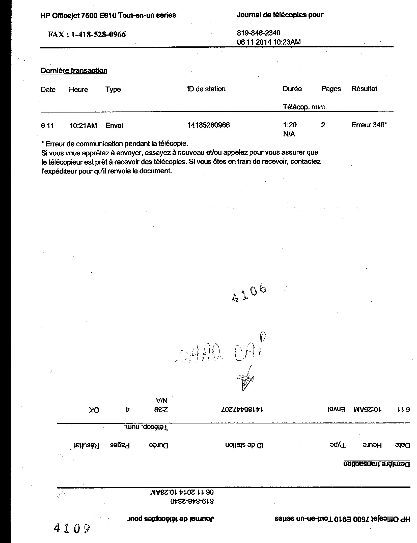 Objet : Envoi de document copie conforme a la TAQ le 16-10-2014.