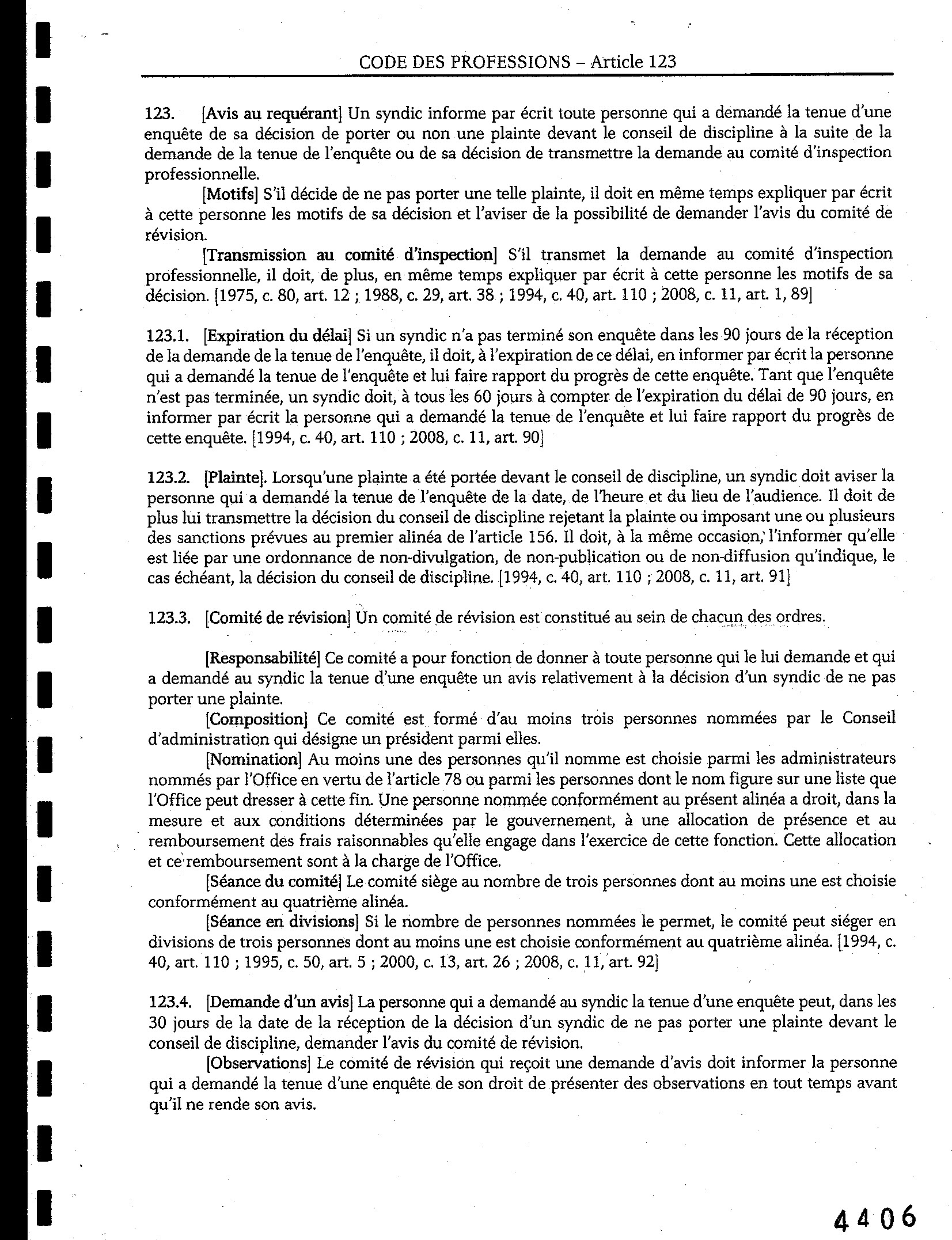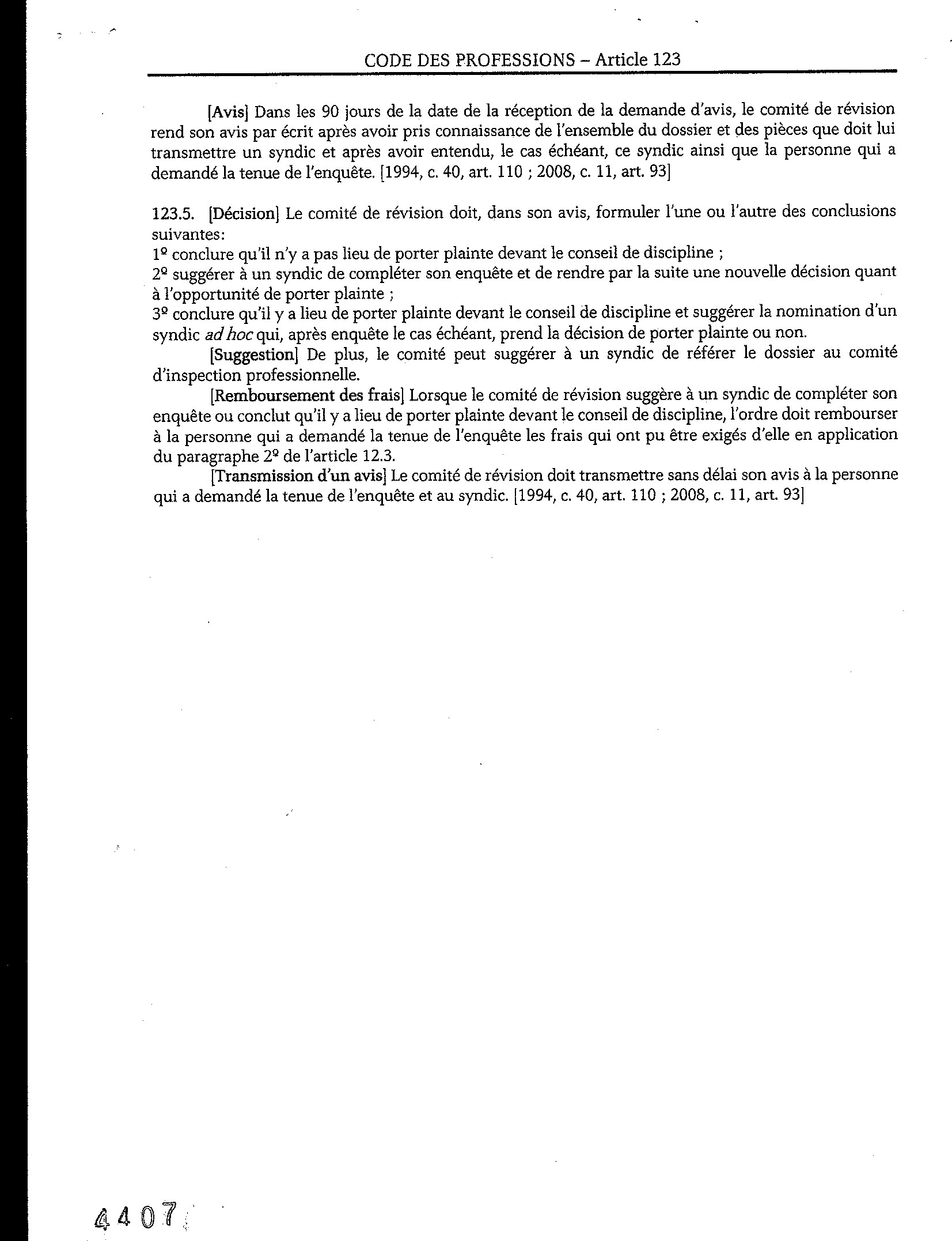 Conformément à l'article 123 du Code des professions, dont vous trouverez ci-joint copie, je vous informe que vous avez maintenant ta possibilité de demander l'avis du Comité de révision relativement à la présente décision en faisant parvenir, par écrit, une demande à cet effet au Comité de révision, à l'attention de: