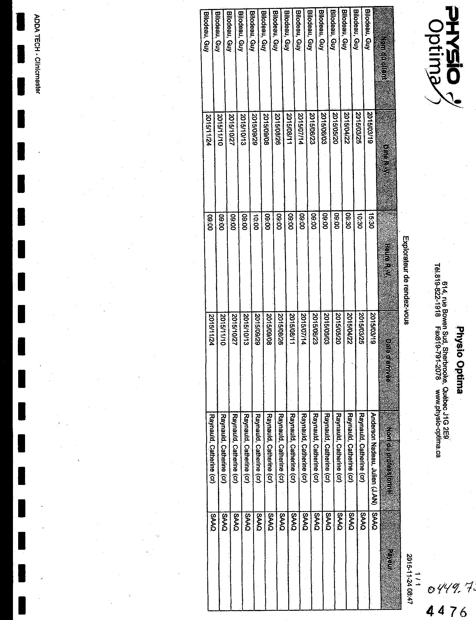 P/j : attestations des rendez-vous physiothérapie de la clinique Optima. Attestations Dre Catherine Lemay.