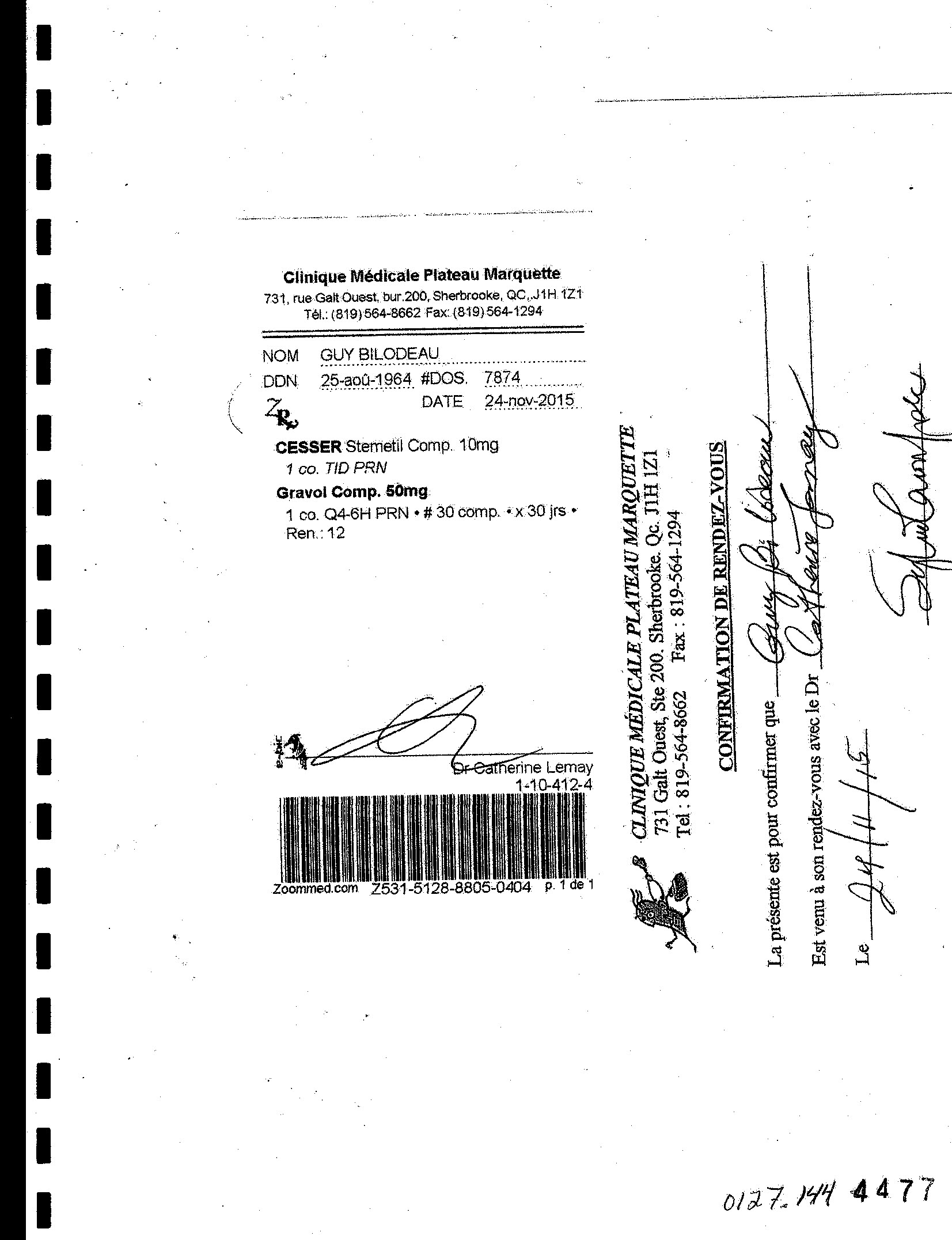 De plus, vous trouverez encore une nouvelle prescription médicament pour le gravol.