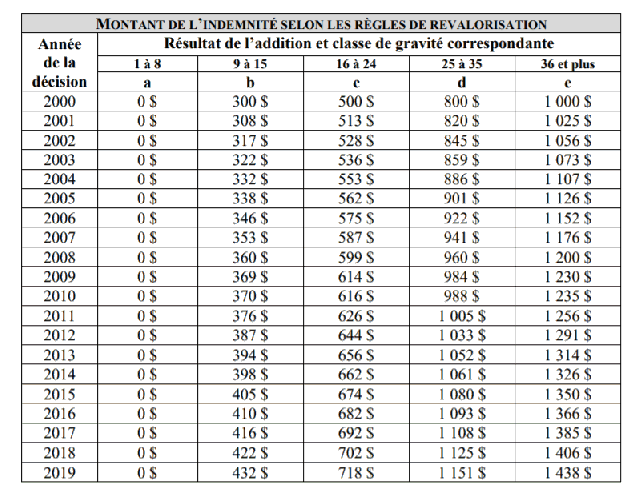 5.7.2 Montant applicable lors de l’évaluation de l’indemnité pour blessures