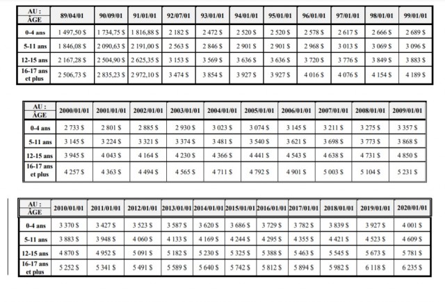 Ces montants proviennent de la circulaire du ministère de la Santé et des Services sociaux (MSSS) qui précise le taux quotidien de base payé à une famille d'accueil hébergeant des enfants.
