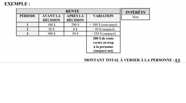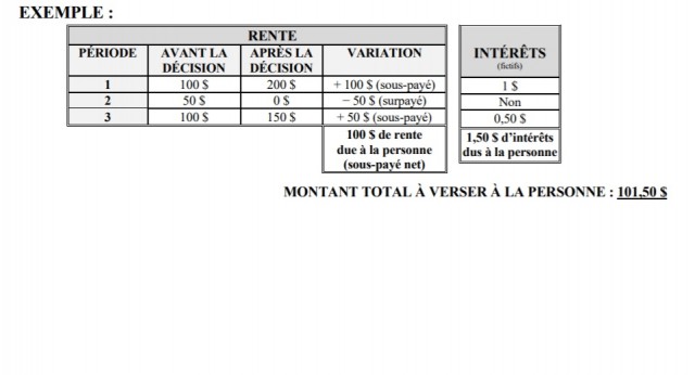 Lorsqu’une décision de reconsidération, de révision ou du Tribunal administratif du Québec touche plusieurs périodes de rente, la Société calcule la variation du montant de la rente pour chacune des périodes.