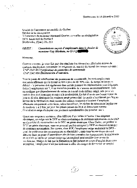Accidentés accidenté: Guy Bilodeau Emplois non compatibles