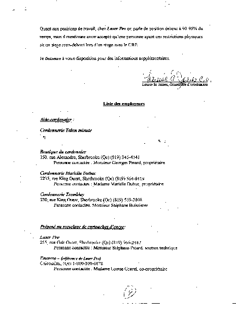 Accidentés accidenté: Guy Bilodeau Emplois non compatibles