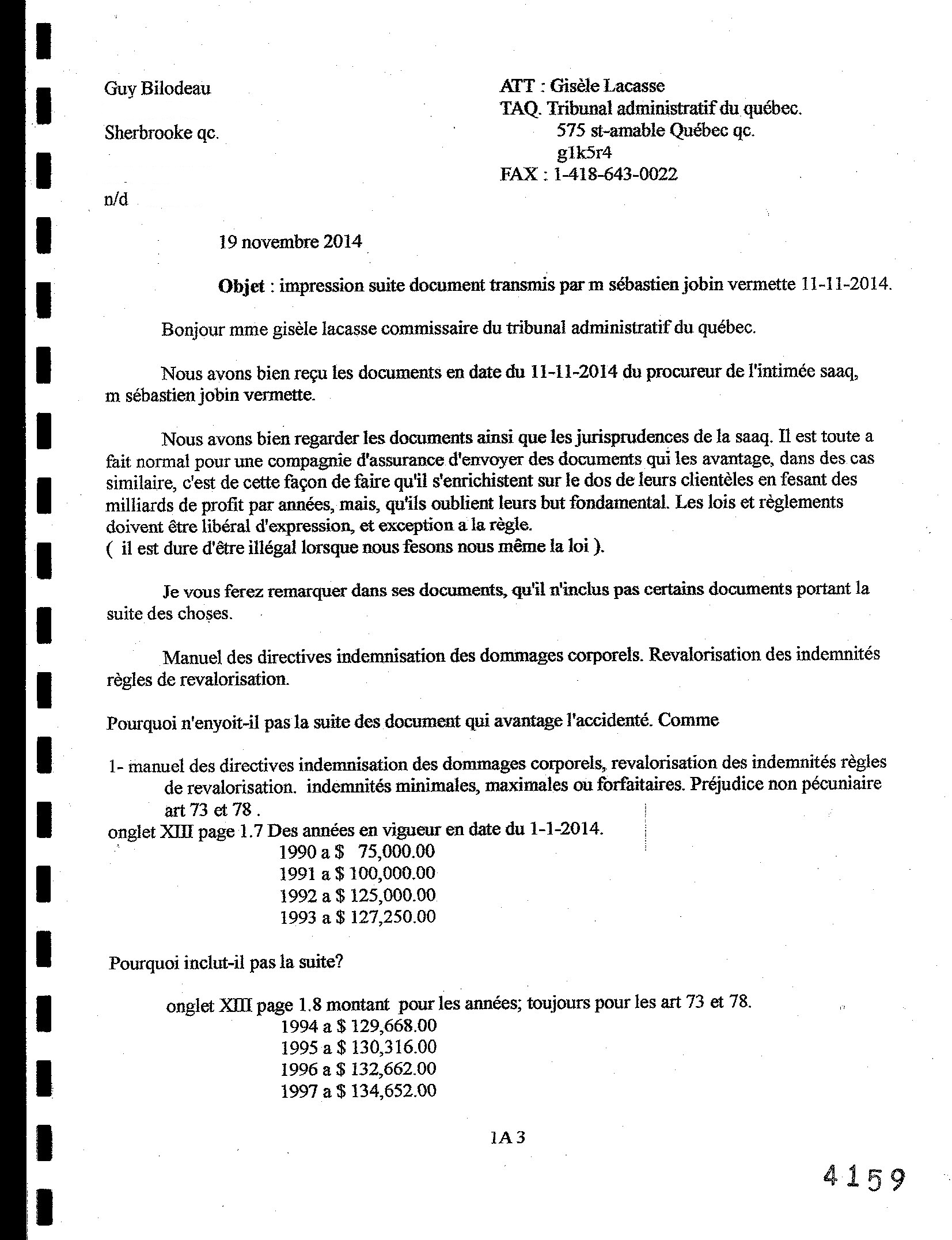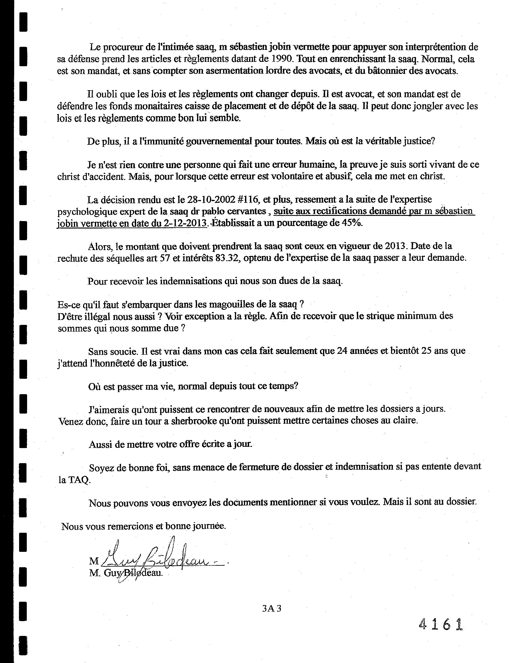 Accidentés accidenté: Guy Bilodeau 2012-2014 CONCILIATION
